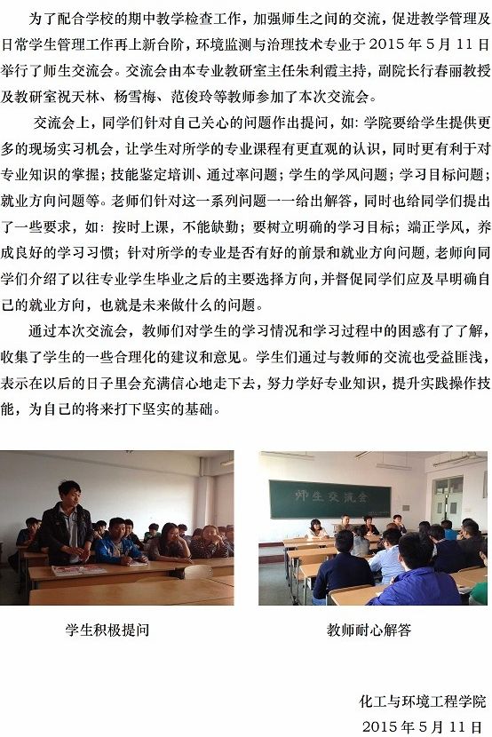 betway西汉姆联环境监测与治理技术专业举行师生交流会