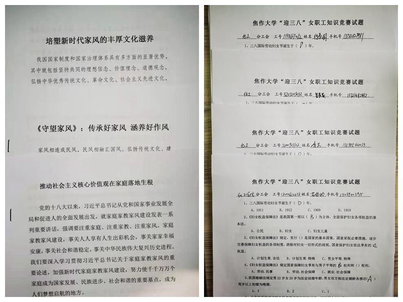 活动期间女教工们纷纷表示,作为人民教师我们要深入贯彻落实习近平总书记关于家庭家教家风的重要论述,主动引导家庭成员既爱小家又爱国家,在促进家庭和睦、亲人相爱、养老育幼等方面共担责任。坚持弘扬优良家风,以好家风支撑起好的社会风气。推进社会公德、职业道德、家庭美德、个人品德建设,倡导以德治家、文明立家、忠厚传家,弘扬清风正气、抵制歪风邪气。引导家庭养成自觉守法、遇事找法、解决问题靠法的意识和习惯,让民法典关于应当树立优良家风、弘扬家庭美德、重视家庭文明建设的规定,走进千家万户,得到有效执行。发挥妇女在弘扬中华民族家庭美德、树立良好家风方面的独特作用,带动家庭成员建设好家庭,让家庭文明蔚然成风,让好家风涵养社会文明新风尚。
