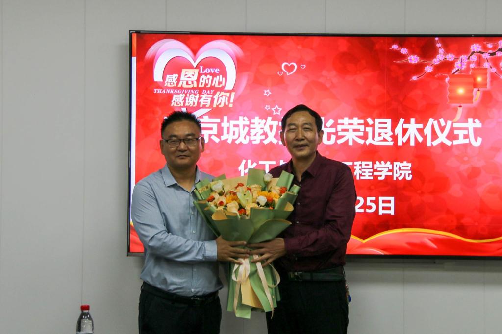 仪式最后,校领导、与会教师和田教授合影留念,田京城教授对团结、和谐、有为、有爱的化工大家庭依依不舍,深情表达对学院的感恩之情和对全体老师们的祝福,同时祝愿学院各项事业蓬勃发展,再创辉煌。荣退仪式在轻松愉快,充满温情的气氛中结束。
