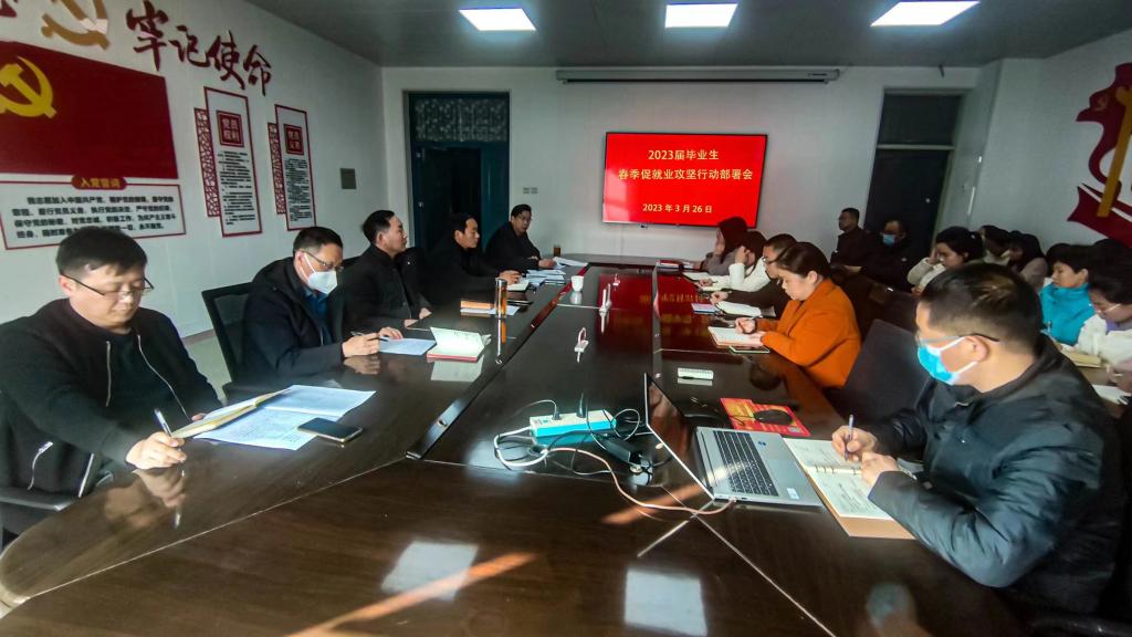 会上,苏永祥经理带领与会人员认真学习了《教育部办公厅关于开展2023届高校毕业生春季促就业攻坚行动的通知》文件精神,传达了教育厅、学校春季促就业攻坚行动有关要求,并就促就业攻坚行动工作作了部署。