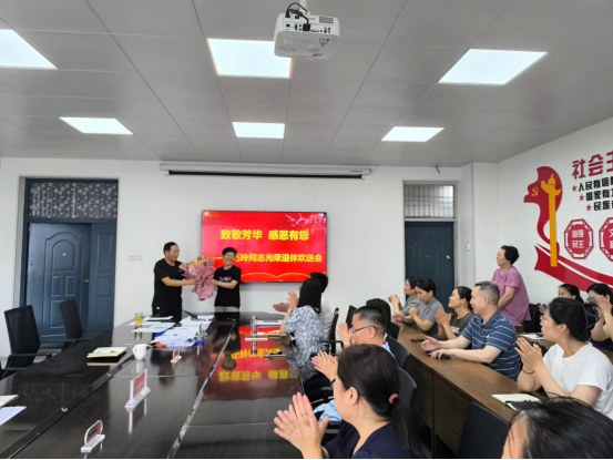 2024年7月,学院姚巧玲教师从教32年,光荣退休,学院于2024年7月8日为姚巧玲老师举办了“致敬芳华 感恩有您------姚巧玲同志光荣退休欢送会”。公司全体教师共同见证,公司党总支副书记欧阳胜主持欢送会。