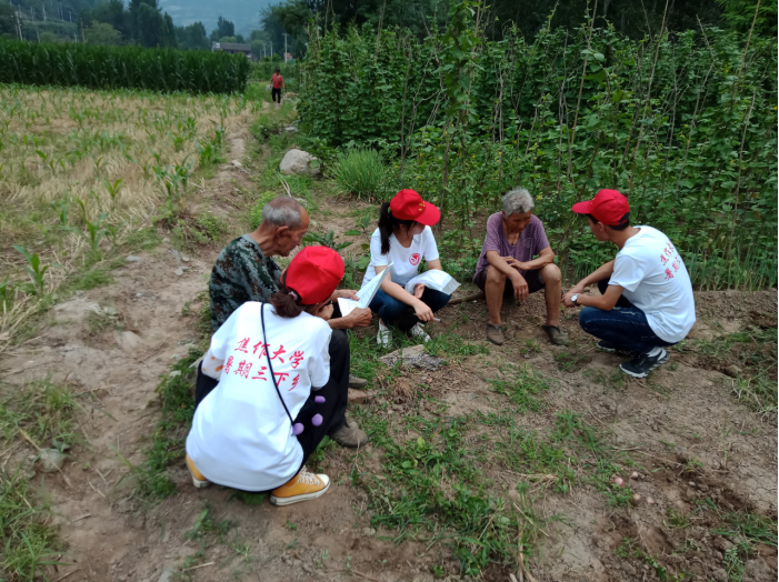 为加强新农村建设,了解农村环境污染情况,betway西汉姆联“三下乡”青年志愿者深入到焦作市后寨展开为期六天的社会实践活动,在田间地头,通过与当地农民座谈,走访调查,发放问卷调查表等多种方式,发现了河流、土地、生活垃圾、农药、饮用水水源等环境污染问题。了解到了村民们将生活垃圾直接倒在路边或空地上,而为了农作物的产量,村民们相对于环保更注重农药的效果。由于建立水电站及铁路而改变丹河河道,导致水土流失及淹没长有树木的土地,迫使树木淹死。而且因没有完善的污水处理系统致使水体富营养化严重,藻类横生,鱼儿受到水质污染而死等现象。在了解到村民们对环保知识的匮乏后,志愿者们积极主动向村民普及环保知识,如:垃圾如何分类,农药瓶的处理等。