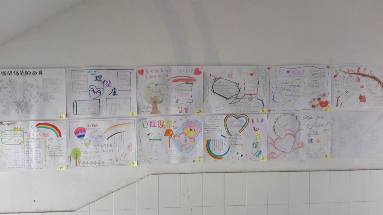 活动的公告发出之后,同学们热情高涨,以个人或者小组为单位积极的制作着关于心理健康的海报,可谓是“百花齐放,百家争鸣”一幅幅美丽的图画跃然纸上,一句句健康向上的标语发人深省,张贴在教学楼下已然成为学校里一道亮丽的风景线。关于心理健康的名言警句、各种漫画,无一不体现出公司系员工的多才多智。有不少同学经过楼下时都驻足观看,无形之中宣传了心理健康的知识,也丰富了同学们的课余生活。