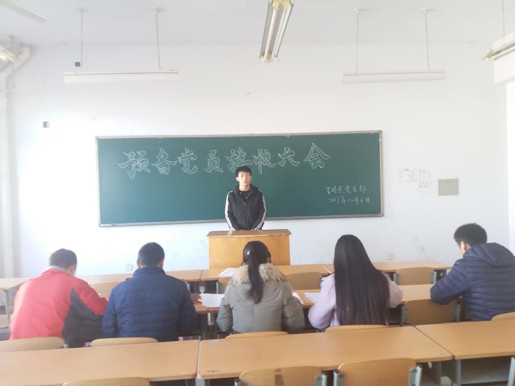 会上,首先每名发展对象做了自我介绍,汇报了自己的入党意向、入党历程和对党的理解和认识,同时结合自己的实际情况表达了加入中国共产党的决心和强烈愿望。在全面汇报之后,这几名发展对象的培养老师和其他党员同志对其进行了全面客观的评价。最终经投票,接受8名发展对象为中共预备党员。